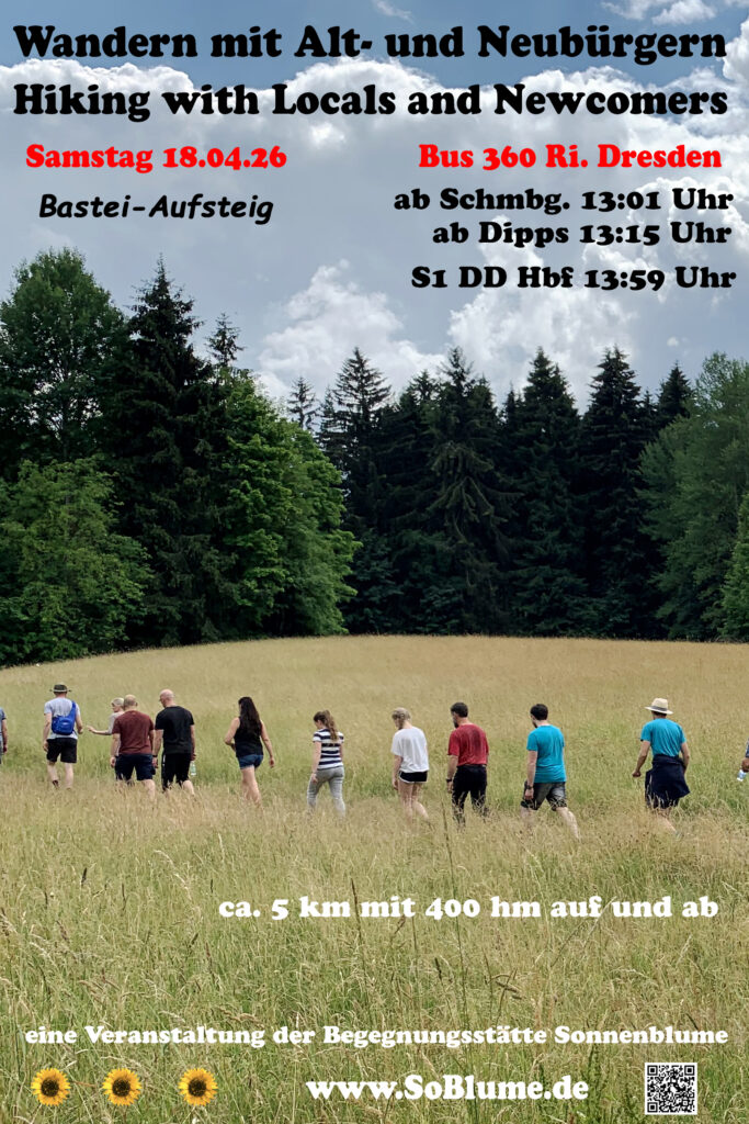 am Samstag den 18. April 2026 starten wir um 13:01 Uhr an der Bushaltestelle Schmiedeberg Mitte/ um 13:59 Uhr am Hauptbahnhof Dresden zur Bastei in der Sächsischen Schweiz.